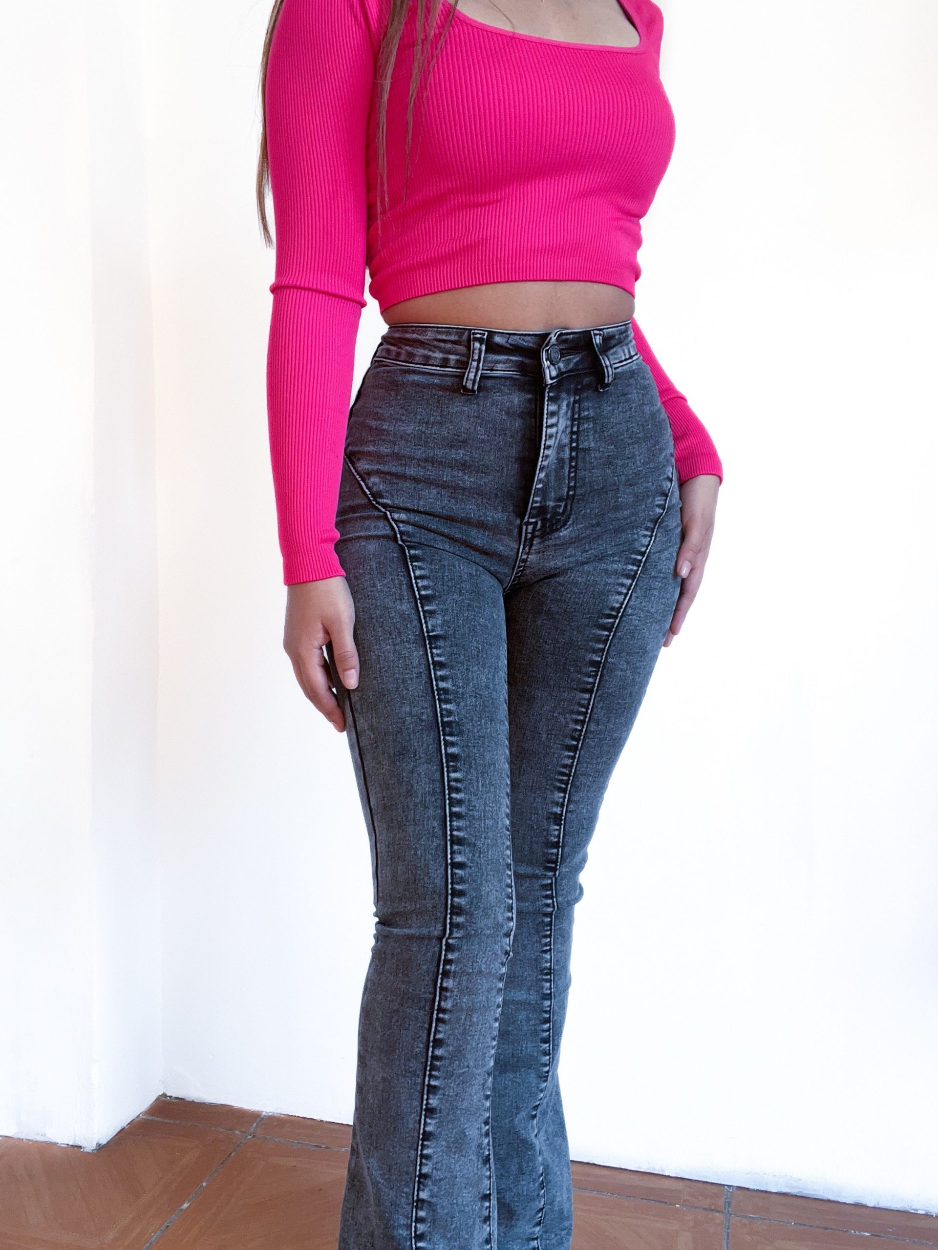 Inicio JEANS Y PANTALONES Jeans básico flare gris costura