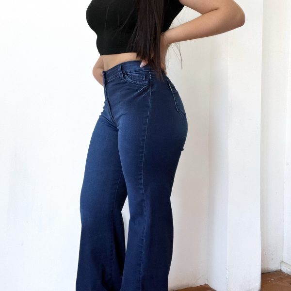 Jeans premium flare azul bolsillos