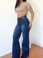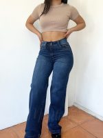 Jeans premium wide leg azul focalizado